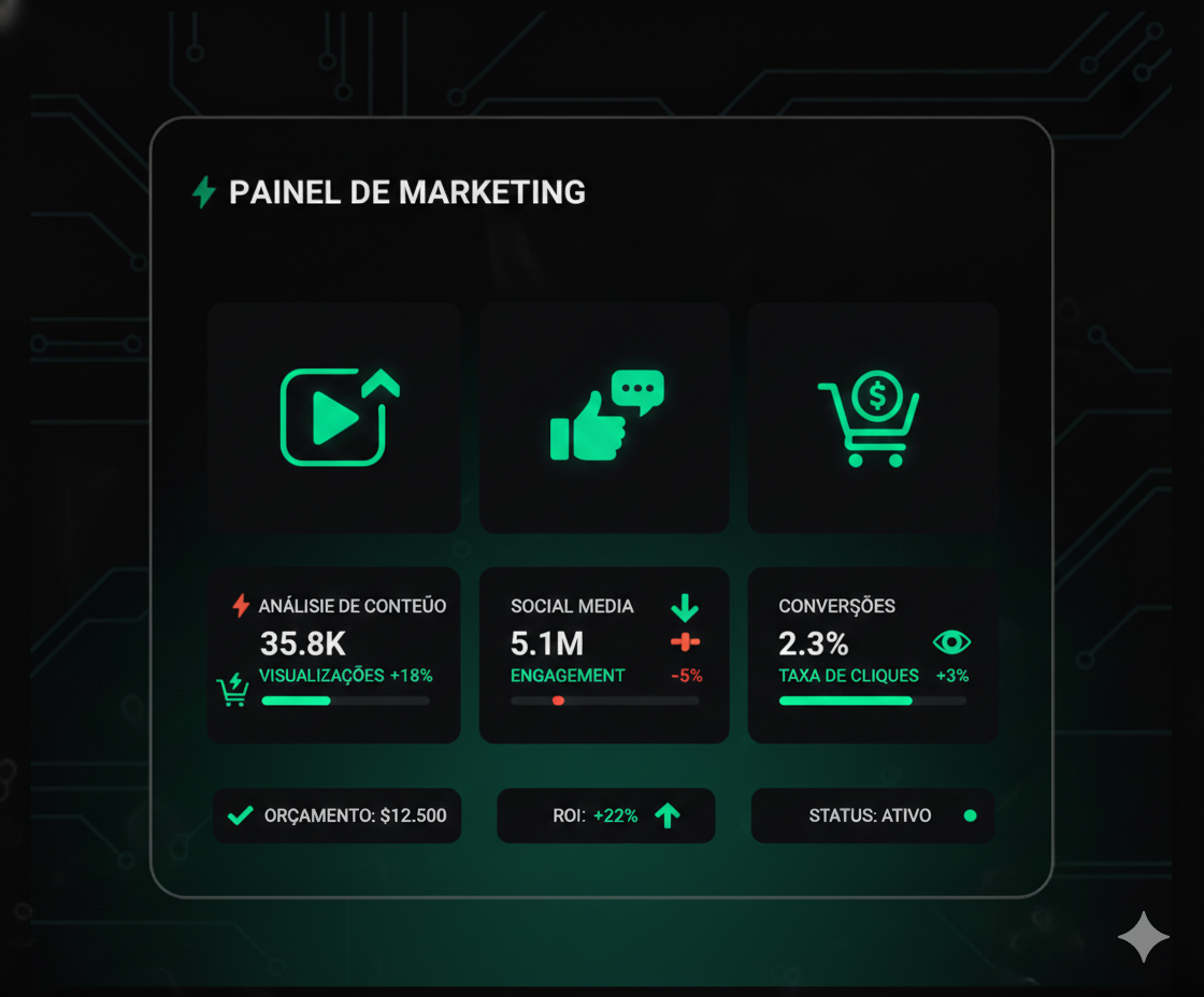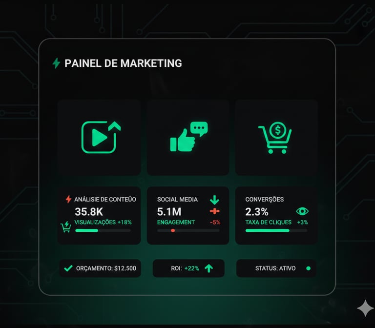Content and media treated as performance assets. Funnels, leads, and conversion analyzed through a controllership mindset, connecting investment, results, and sustainable growth.